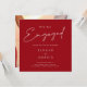 This minimal, red engagement invitation will set the tone for any simple, understated wedding engagement setting surrounded by delicate decor and flowers, and matching crimson red wedding decor. A perfect addition to any simple, minimal, or elegant wedding celebration.