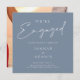 We're Engaged Simple Photo Dusty Blue Engagement Invitation. Stylishly announce your engagement to your friends and family with this simple yet elegant, 'We're engaged' engagement party invitation, with a minimalist white script design on a plain light blue background, with a personalised photo of you both on the back. This engagement invitation gives a modern, minimalist feel, perfect for any simple, elegant wedding.