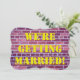 This wedding invitation features the message "WE'RE GETTING MARRIED!" over a background of a reddish/brownish brick wall.