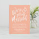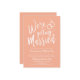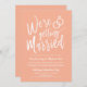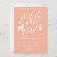 After the big day and the rings are exchanged invite your most honoured guests to an after the wedding celebration. This invitation features the words "We're Getting Married" in fancy script letters over a Soft Peach colour backdrop. Towards the side of this are a pair of wedding rings. Underneath this unique graphic is a space for your own words and information for your post-wedding event.