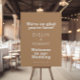 This we're so glad you're here brown wedding welcome poster is perfect for a rustic wedding. The design features a beautiful font in a brown background to embellish your event.