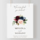 Compliment your classic wedding event with this we're so glad you're here classic wedding welcome poster. The design features beautiful hand-painted pink, blush, blue, navy and burgundy flowers with green leaves, neatly grouped into elegant bouquets to embellish your event invitation cards.