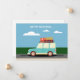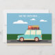 Customised change of address cards for a family moving to a new house. Enter your personalised new home information on the back of this Just Moved card. Front shows a cute car with luggage piled on top and blue sky with the headline text "We're Moving" which can be changed if desired.