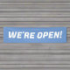 Announce your grand opening or celebrate a special event with our "We're Open!" Blue & White Promotional Sign Banner. This eye-catching banner is designed to draw attention and attract customers to your establishment, whether it's a new store, restaurant, or any business occasion.