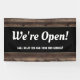 We're Open Business Wood Rustic Banner