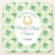 A charming St. Patrick’s Day baby shower coaster featuring a soft green background, golden horseshoes, and scattered four‑leaf clovers for a sweet “lucky charm” theme. The central white oval frames the event details beautifully, creating a warm, welcoming design perfect for celebrating a growing family. Ideal for March celebrations, Irish‑inspired themes, or any baby shower that embraces luck, joy, and new beginnings.