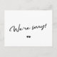 We're sorry black and white cancel postponement postcard