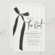 Elevate your engagement party with our modern grey and white striped wedding invitation, designed to impress. Featuring a chic black coquette ribbon bow, this invitation exudes elegance while the preppy light green stripe background adds a touch of sophistication. Perfectly crafted to set the tone for your special day, it invites your guests to celebrate your love story in style.