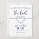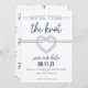 This nautical themed save the date features a handmade heart-shaped knot and an anchor pattern to let guests know when you're tying the knot.