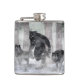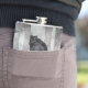 The flask itself is fine. It’s a cheap flask, obviously bought in bulk, however am prepared to overlook that. Given that it is a personalized item, I would have liked to have seen gift boxing instead of the generic packaging. Terrible printing, and/or quality. It’s a cheap, tacky vinyl. It is not cut straight and is also applied in a way that it is overhanging the bottom, causing the glue to catch on items and it will eventually roll and tear, damaging the wrap.