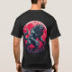A death metal-inspired illustration of a werewolf caught in the violent act of transformation beneath a blood-red moon. The design features razor-sharp claws, sinewy muscles, and an expression of untamed rage. With dark, jagged detailing and bold contrasts, the piece exudes raw ferocity, complemented by the ominous glow of the moon. Perfect for t-shirt designs that embrace dark, gothic, and metal aesthetics