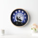 Werewolf clock showing a howling wolf and 12 phases of the moon in place of numerals, with the caption 'Bad Moon Rising'.
