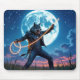 A werewolf wearing a leather jacket stands in a field, lassoing a bright, full moon