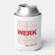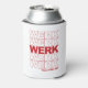 Our fun retro can cooler design takes its cue from the classic "thank you, have a nice day" grocery bag, with "WERK" repeated five times in bright, bold red block typography and "have a nice day" printed beneath. Design repeats on back.