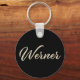 Ein sehr schöner edler personalisierter Button Schlüsselanhänger im whitegold Lettering Look auf schwarz für Werner.