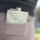 The flask itself is fine. It’s a cheap flask, obviously bought in bulk, however am prepared to overlook that. Given that it is a personalized item, I would have liked to have seen gift boxing instead of the generic packaging. Terrible printing, and/or quality. It’s a cheap, tacky vinyl. It is not cut straight and is also applied in a way that it is overhanging the bottom, causing the glue to catch on items and it will eventually roll and tear, damaging the wrap.