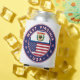 Badge of West Virginia with flag of West Virginia and flag of USA colours, rounded shape.