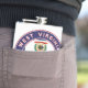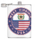 Badge of West Virginia with flag of West Virginia and flag of USA colours, rounded shape.
