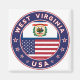 Badge of West Virginia with flag of West Virginia and flag of USA colours, rounded shape.