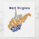 Fun and colourful typographic design with a retro feel features the state of West Virginia's nickname: The Mountain State displayed within a state shaped silhouette