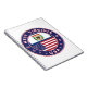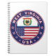 Badge of West Virginia with flag of West Virginia and flag of USA colours, rounded shape.