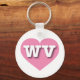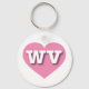 This keychain features a cool pink heart containing the bold, white, upper case letters WV, the official abbreviation for West Virginia, the mountain state.
