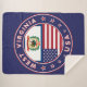 Badge of West Virginia with flag of West Virginia and flag of USA colours, rounded shape.