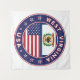 Badge of West Virginia with flag of West Virginia and flag of USA colours, rounded shape.