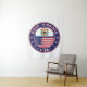 Badge of West Virginia with flag of West Virginia and flag of USA colours, rounded shape.