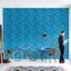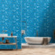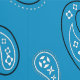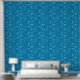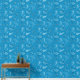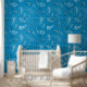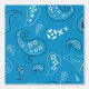 This peel and stick wallpaper has the look of a classic western bandanna with paisley shapes in black and white set against a medium blue coloured background.