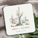 Western Boho Cactus Desert Landscape Wedding Square Paper Coaster
