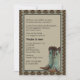 A terrific invitation featuring western boots against a snakeskin background. Use it for any western-theme occasion.