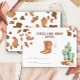 This design features modern neutral colours in a watercolor application. Design in cow print, glass of champagne, desert cactus, cowboy boots.