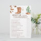 This design features modern neutral colours in a watercolor application. Design in cow print, glass of champagne, desert cactus, cowboy boots.