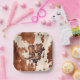 The cowhide leather details are simulated in the artwork. No actual cowhide or leather will be used in the making of this product.