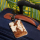 The cowhide leather details are simulated in the artwork. No actual cowhide or leather will be used in the making of this product.
