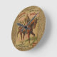 This Buffalo Bill's Wild West poster is based on an 1800s book by Buffalo Bill. It shows Buffalo Bill riding his wild west horse, holding his hat in one hand. Buffalo Bill rides under the title, "Buffalo Bill's Wild West" "Historical Sketches and Daily Review" In the background, buffalo are running from cowboys.