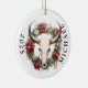 Western Christmas Cow Skull Monogram Ceramic Ornament