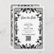 A modern Western cowboy cowgirl style design with hand drawn elements of a cow skull, horseshoes, floral and cactus ornaments. Black and white floral border wedding design featuring hand drawn floral, cactus, cow skull and horseshoes. This contemporary modern Western country wedding design is ideal for all seasons. An elegant black and white ranch, farm or barn style design featuring hand drawn illustrations. A Western Country cowboy themed wedding save the date card design with modern elegant elements. Matching wedding invitations and other stationery items are also available.