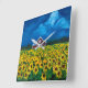Bright, bold and beautiful! This sunflower field has been created in the heart of the American southwest. The warm colors of rustic reds, blues and yellows set in the background make this a perfect gift for those who love country living.
