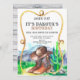 Western cowboy boots, hat and lasso frame wild west birthday party invitation. Rustic barn wood pattern on the back of the invitation. For a young boy's or girl's party celebration.