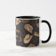 Personalise this western design mug with a name or monogram initials for yourself or a special cowboy or cowgirl. The design features brown and tan cowboy boots and hats with horseshoes on a black background. A black bar edged with brown gives a space for your name or monogram. This design is original art by Phyllis Dobbs and is available with other colour backgrounds and on coordinating products.