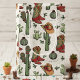 This festive western cowboy Christmas gift bag features a pattern of hand-drawn western illustrations of a pine wreath with cowboy boots, cowboy hat, holly berries, cacti and vintage xmas ornaments among stars and the hand-written words, "Howdy Christmas".