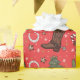 Cute and fun western themed cowboy cowgirl country Chrismas paper. Makes for festive holiday wrapping. Design includes cowboy boots and hats, cactus, Christmas trees, and candy canes. Green, brown, red, and white colour scheme.