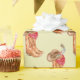 Western-themed patterned wrapping paper features a pair of cowboy boots with revolver and red bandanna on light background