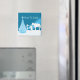 Cowboy praying at the cross in a winter snow scene with his horse ans a tree with star kitchen magnet. Small holiday gifts, party favours and stocking stuffers.