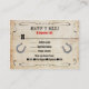 Western themed RSVP response enclosure card with galloping horse and horseshoe on a vintage grungy background with an rustic feel. Hand drawn illustration by McBooboo. To make more changes go to Personalise this template. On the bottom you’ll see “Want to customise this design even further? Click on the EDIT using Design tool. From there you can change some of the fonts & some colours, move things around or delete what you need.