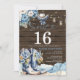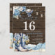 Western Cowgirl Blue Floral Wood Sweet 16 Birthday Invitation