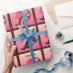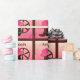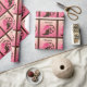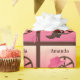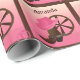 A graphic illustration of a western wagon wheel, cowgirl hat and cowgirl boots on custom gift wrap. The wrap has a text template for your personalisation.
