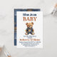 Western Denim Patchwork Bear Blue Jean Baby Shower Invitation